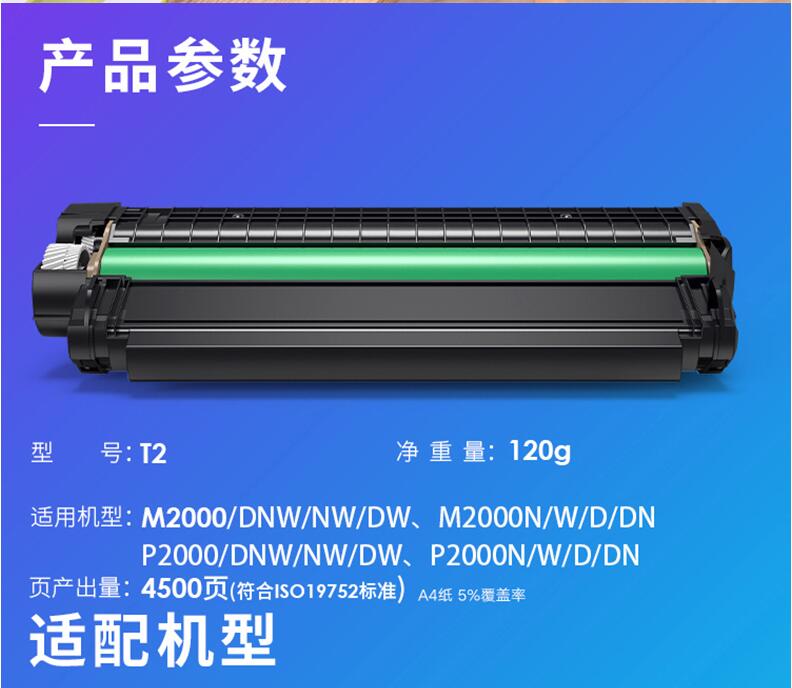 得力T2原裝硒鼓墨盒碳粉墨粉M2000DW M2000DNW M2000N DN NW P2000D P2000W 2000激光復(fù)印機打印機粉盒通用