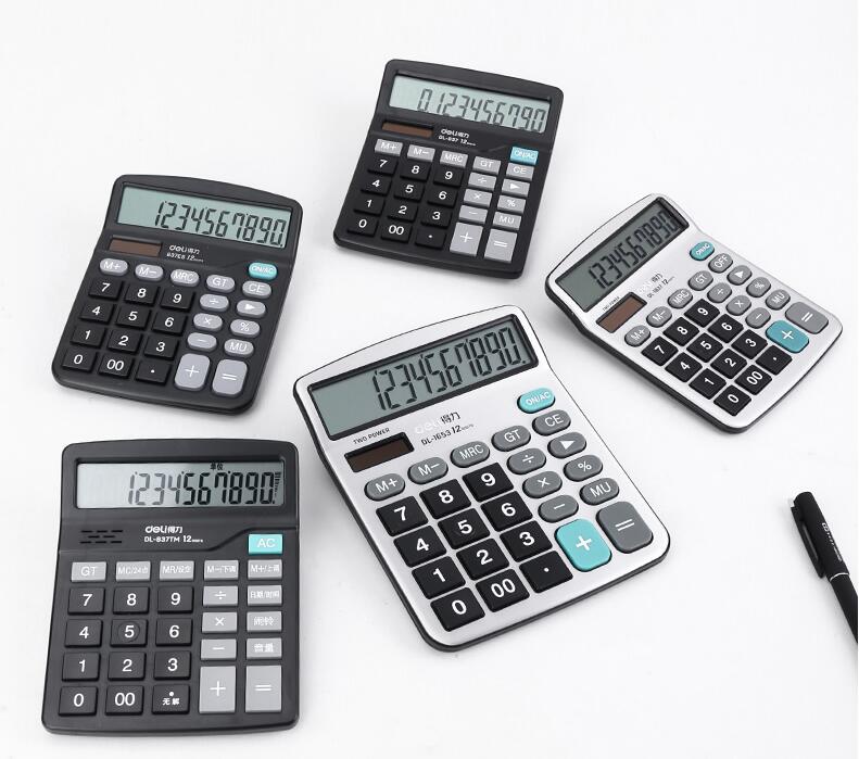 得力837計(jì)算器辦公用會(huì)計(jì)專用太陽(yáng)能學(xué)生用帶語(yǔ)音大學(xué)財(cái)務(wù)小號(hào)便攜雙電源計(jì)算機(jī)器按鍵文具辦公用品大號(hào)