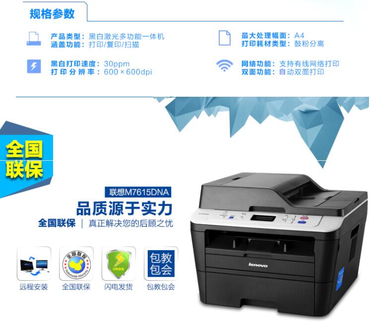 聯(lián)想M7615DNA/M7625DWA網(wǎng)絡雙面打印自動連續(xù)復印掃描激光一體機