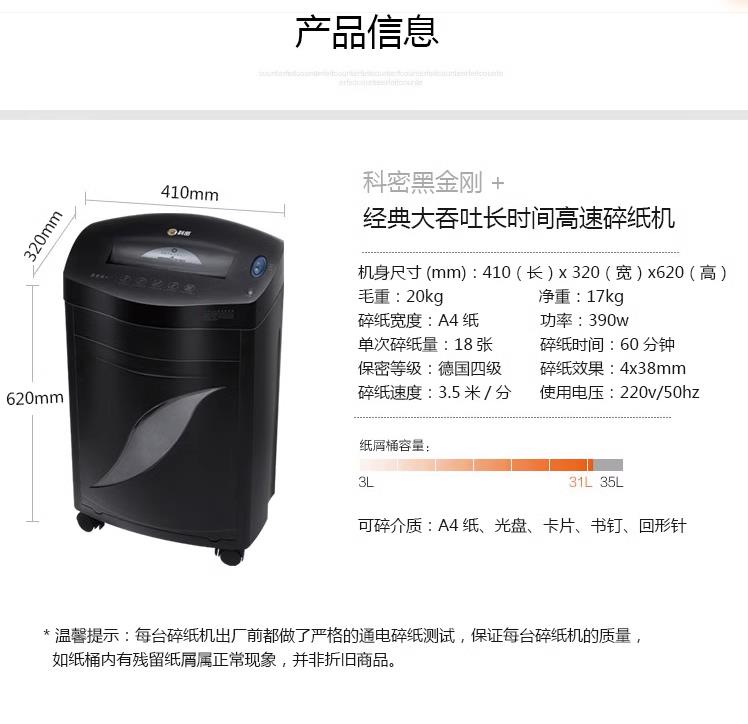 碎紙寬度(mm)  :   120